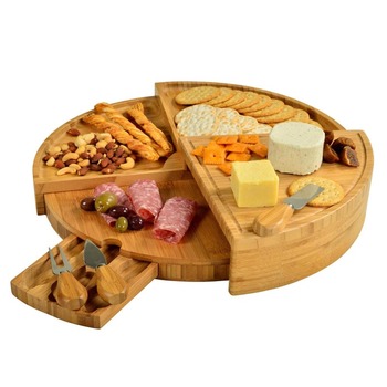 Picnic Patented Bamboo Cheese Board with Knife Set-Stores as a Compact Wedge-Opens to 18" Diameter Wood Charcuterie Board